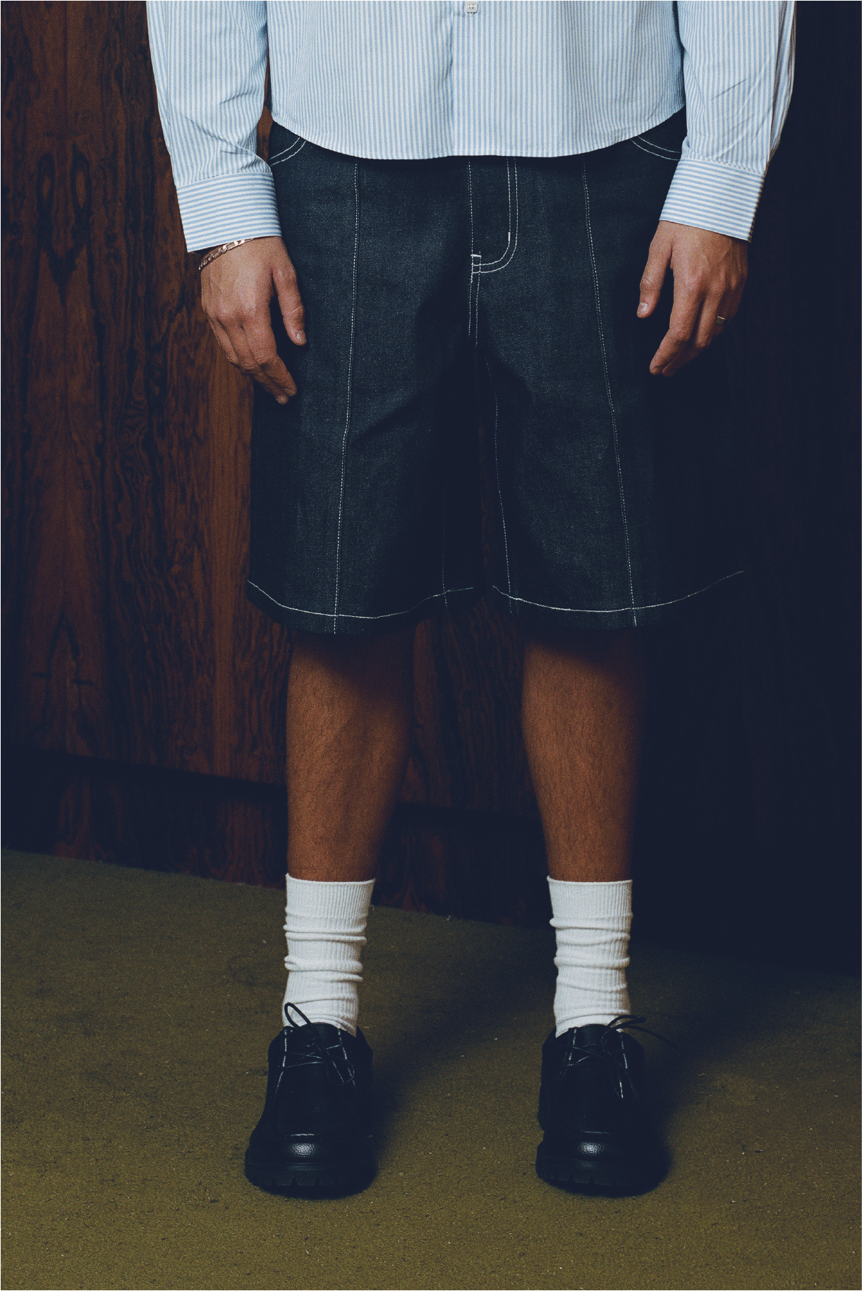 These shorts have been made in a refined but oversized fit with a full length front & back dart for extra structure.